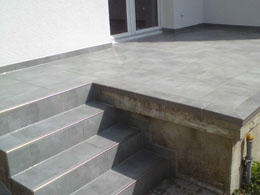 Für Terrassen und Balkon mit Feinsteinzeug oder extrudierter Keramik bieten wir eine lose Verlegung von Terrassenplatten in verschiedenen Farben, Oberflächen (z.B. auch in Holzoptik) und Größen.